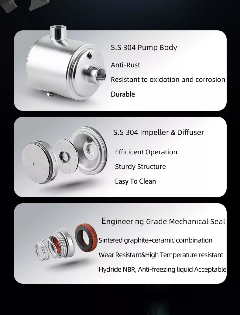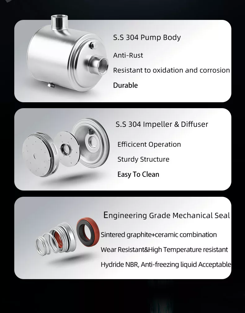 각 단계가 전체 압력 출력에 기여할 때마다 필요할 때마다 꾸준하고 강력한 물 흐름을 즐길 수 있습니다. 정원에 물을주는 것부터 여러 샤워 실을 동시에 달리는 것에 이르기 까지이 펌프는 신뢰할 수 있고 일관된 성능을 제공합니다.