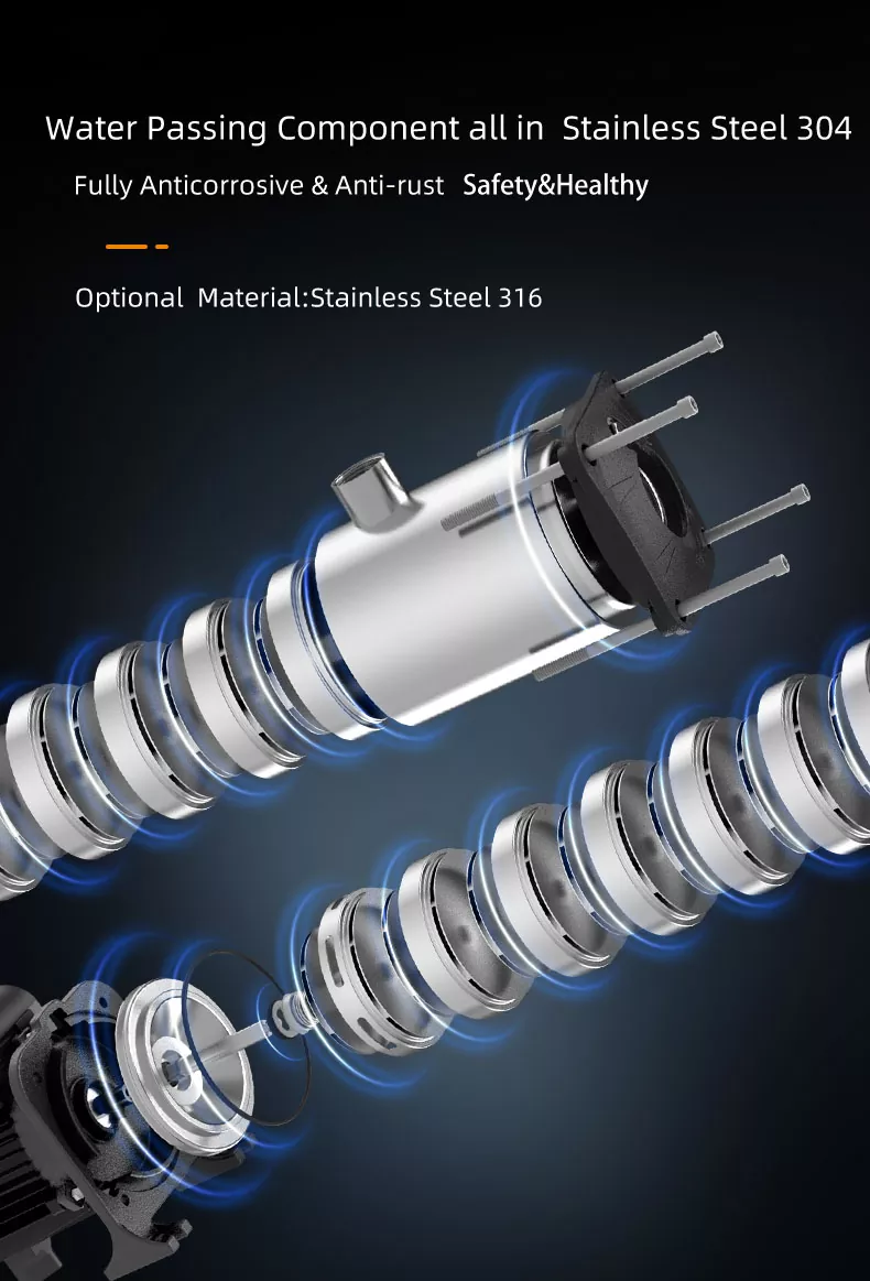 Risull Rated Flow Capcacity 12m³/h 스마트 인버터 수평 스테인레스 스틸 다중 지심 펌프