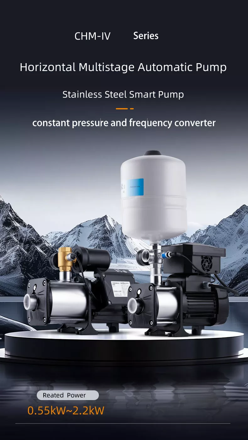 CHM8/IV 시리즈 스마트 인버터 시리즈 수평 스테인레스 스틸 다중 리포 갈 펌프는 현재 시장에서 비교적 성숙한 제품으로, 컴팩트 한 구조와 안정적인 작동, 낮은 작동 노이즈, 최대 44-70%의 효율성이 있습니다. 모든 물 통과 구성 요소는 스테인레스 스틸 AISI304로 만들어졌습니다.